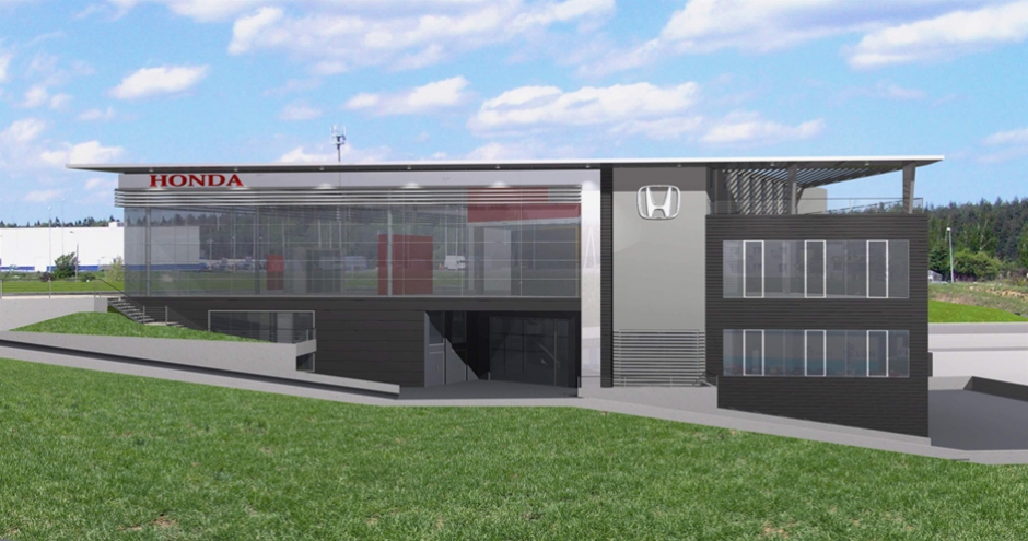 Obiekt zaprojektowano wraz z serwisem, warsztatem blacharskim i lakiernią oraz podziemnym parkingiem